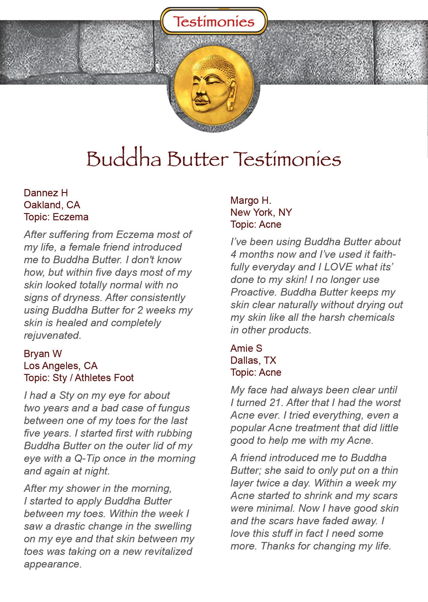 Buddha Butter is a revolutionary formula that delivers powerful plant-based ingredients to balance and repair your skin. The ingredients in Buddha Butter work in tandem with your skin getting down to the source of your skin ailment allowing the skin to heal itself.