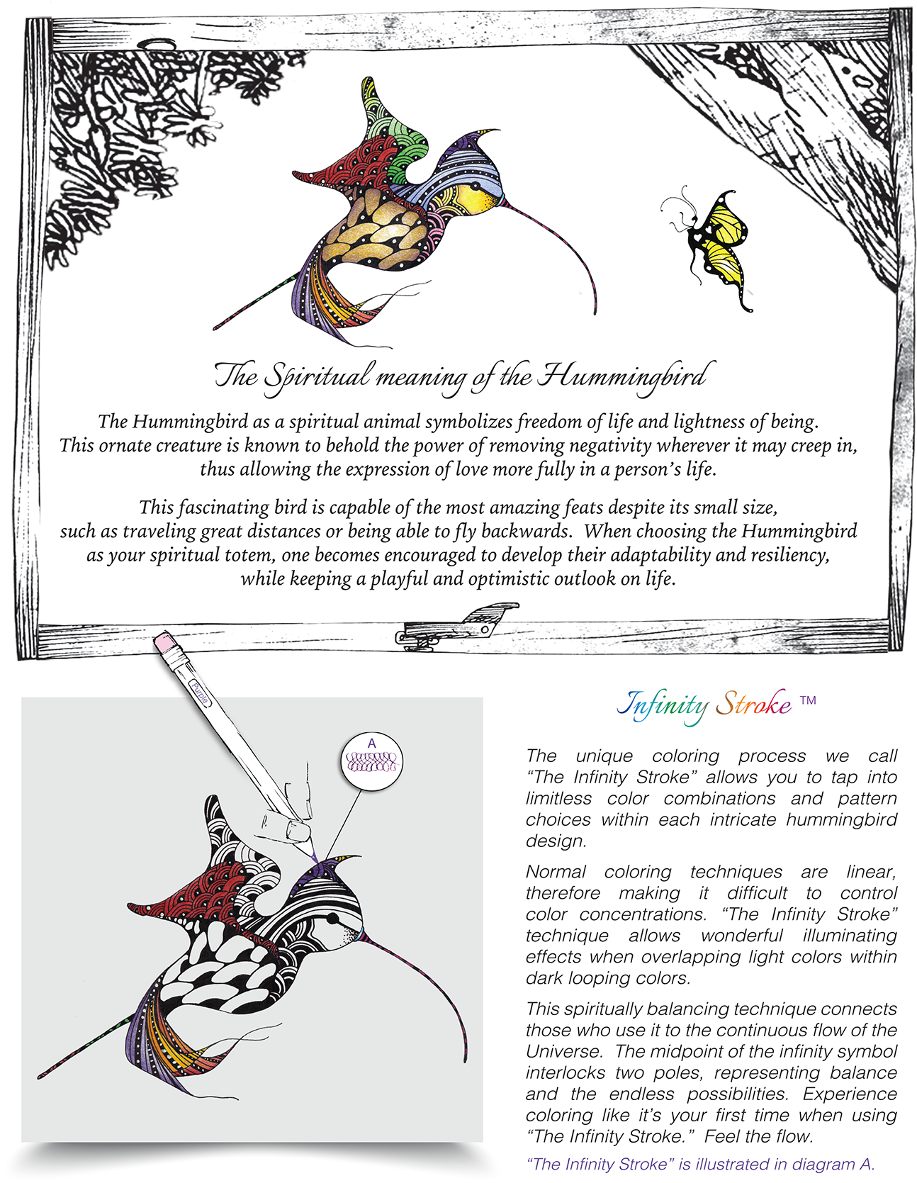 When the hummingbird shows up along our journey, it is a reminder to embrace the simple pleasures life offers and take time to enjoy yourself. Coloring has been proven to reduce stress and calm the mind and spirit.